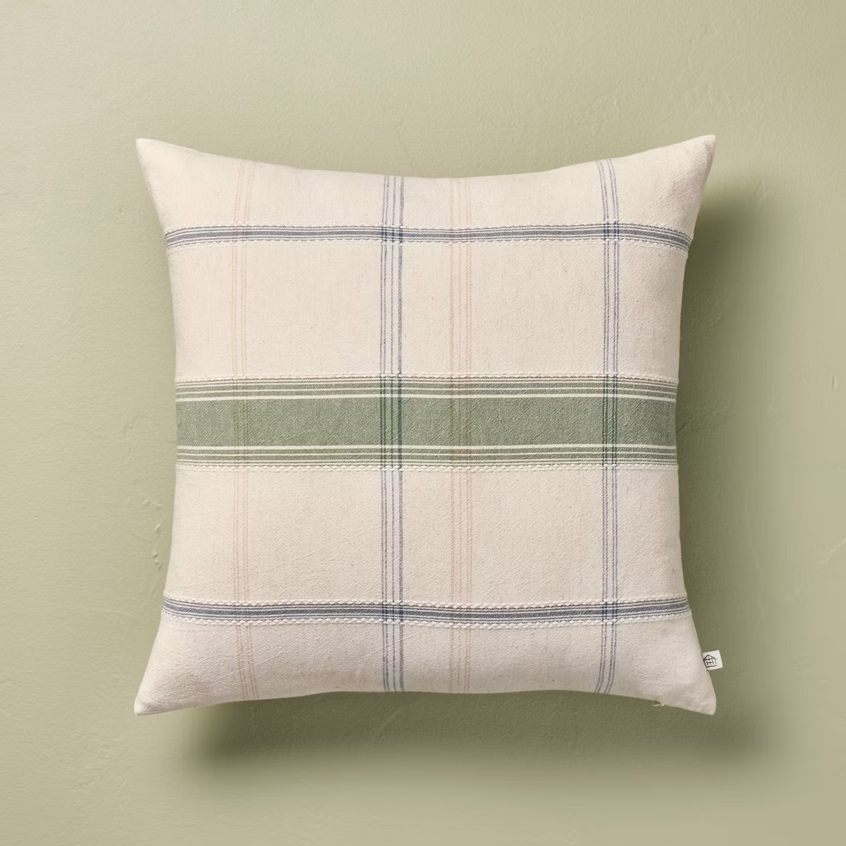 18″x18″ Throw Pillow Sour Cream and Green Plaid – Hearth & Hand™ with Magnolia